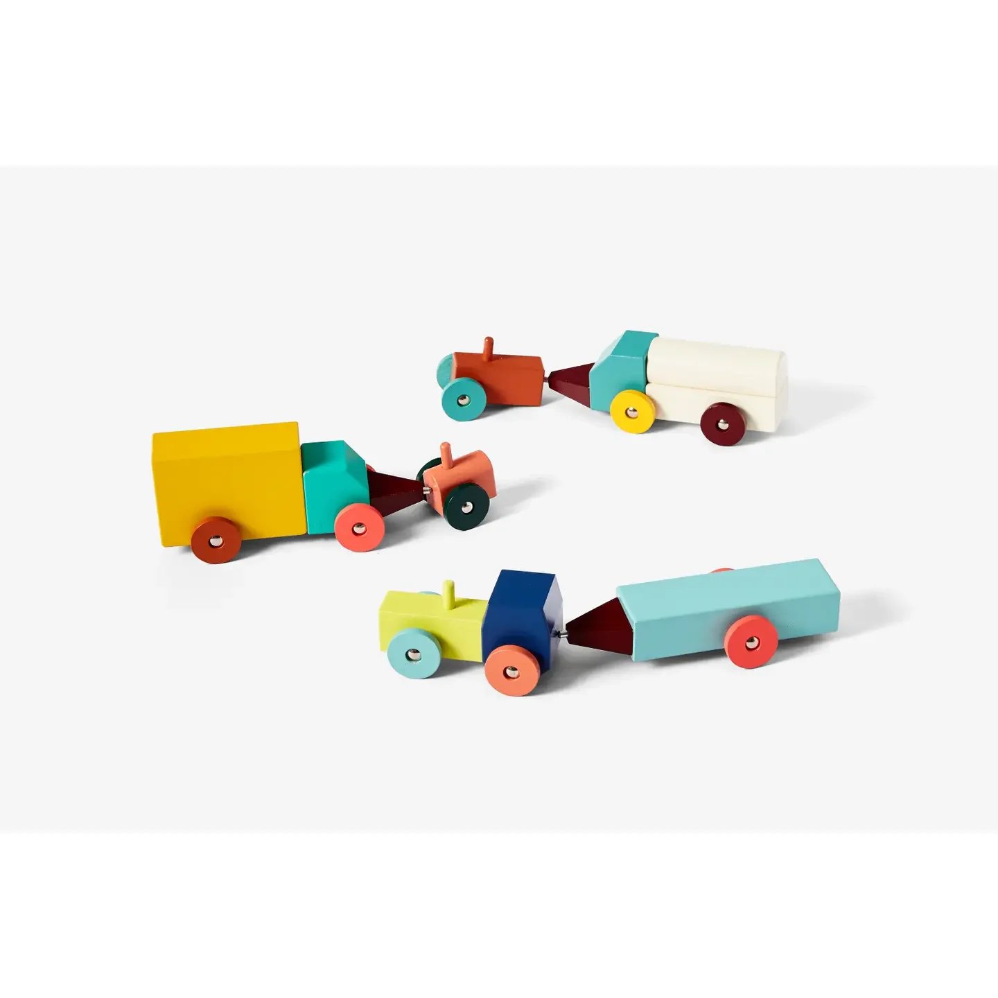 They built them from wood and painted them by hand, using their characteristic bold color palette. The objects they created are fresh, original and imaginative.